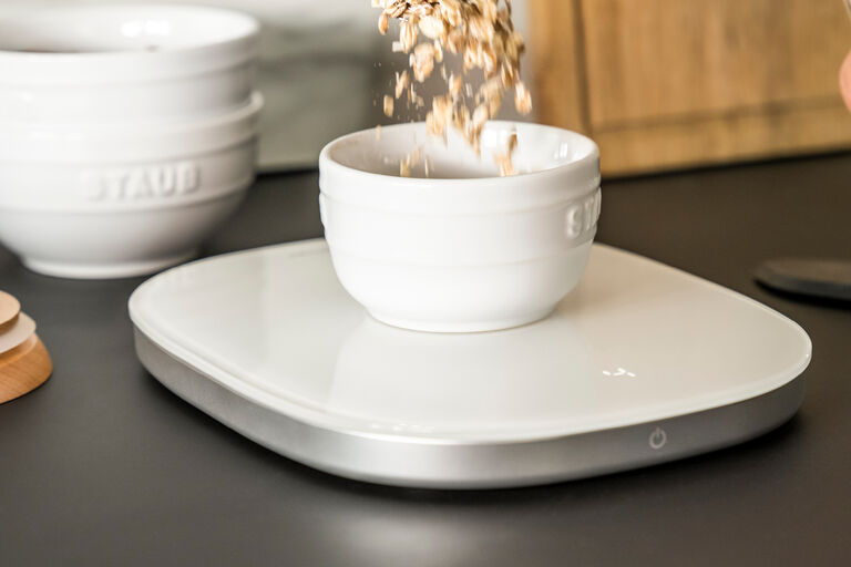Here come our heavyweights in precision. Down to the gram, you’ll know here how much of your ingredients you’ll be using for your treats. If you like to stick strictly to recipes, this is just the thing for you and successful dishes of all kinds! No batteries – rechargeable via USB cable Weighs up to 10 kg Tare function for weighing Display with sensor touch and automatic switch off.